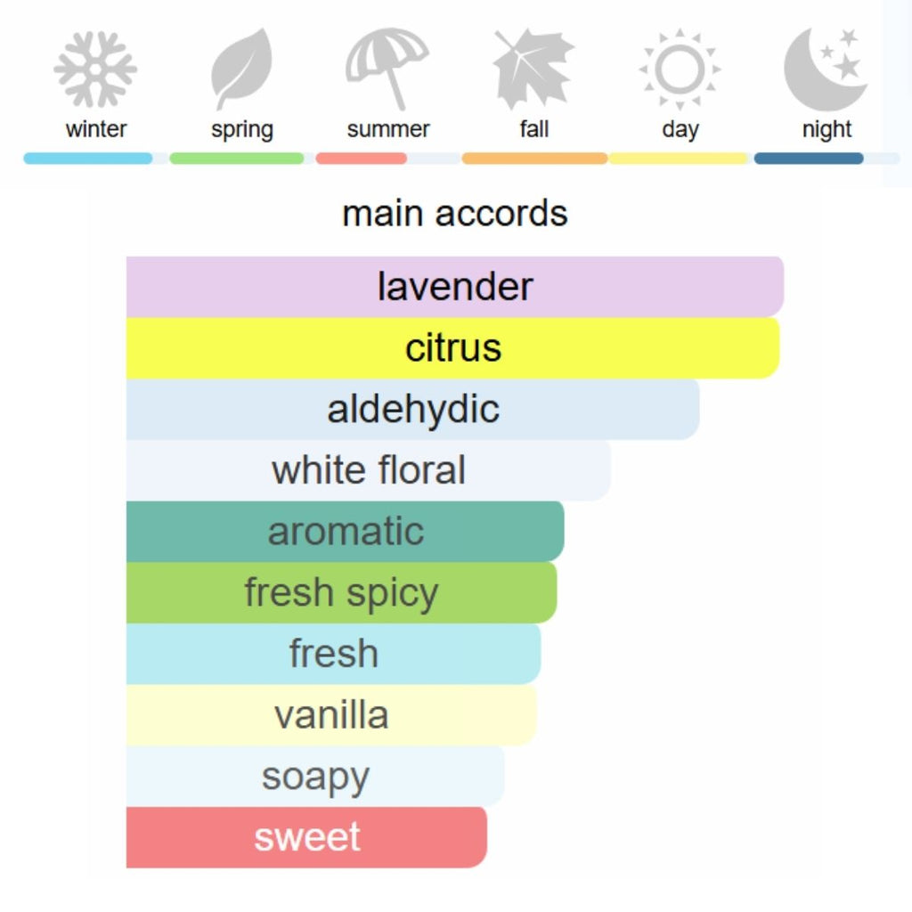 Връхни нотки: алдехиди, бергамот и мандарина