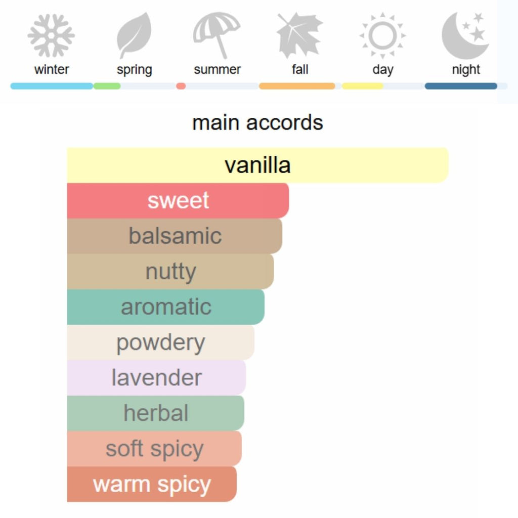 Базови нотки: мадагаскарска ванилия, кестен, кедър и пачули