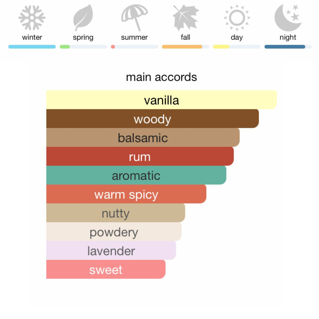 Базови нотки: мадагаскарска ванилия, кестен, кедър, пачули