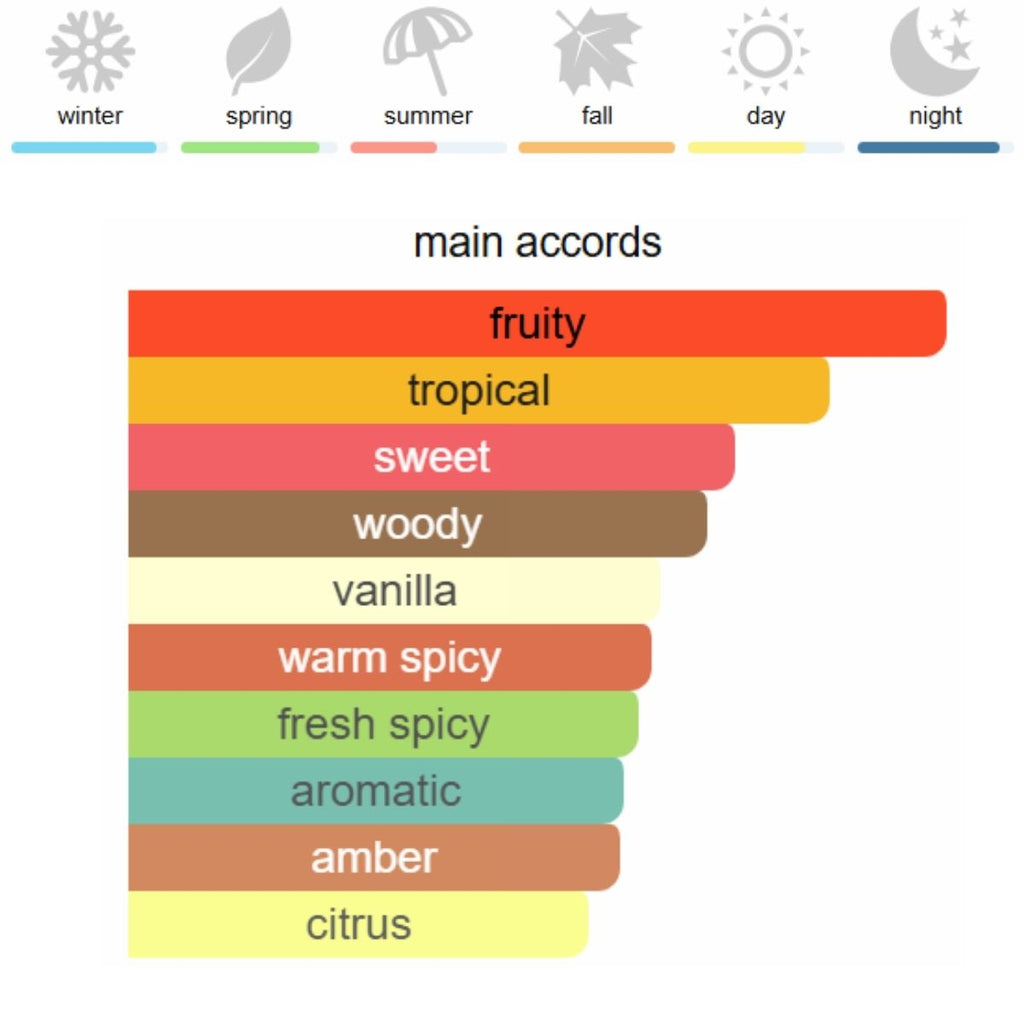 Базови нотки: Ванилия, Амбър, Тиково дърво, Ветивер, Мъх