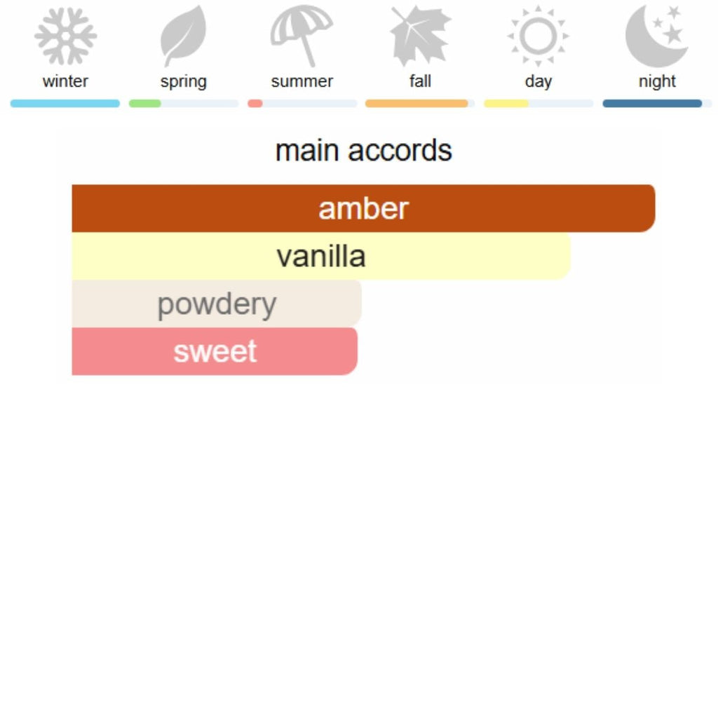 Базови нотки: Амбър, Ванилия, Тонка, Мускус, Кедър