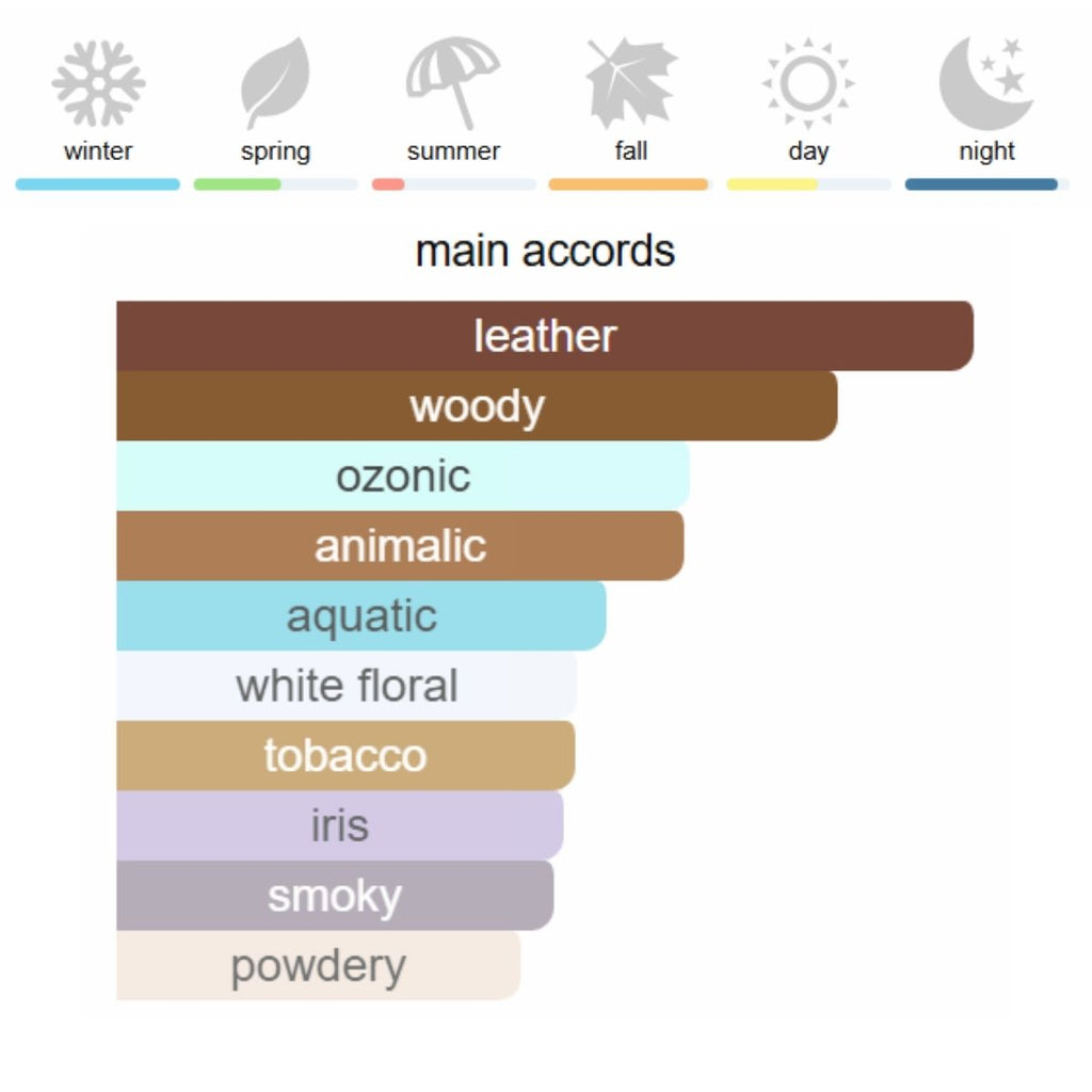 Ombré Leather е изтънчен, чувствен и модерен аромат с изразена кожена нотка, комбинирана с цветни и топли базови акорди.