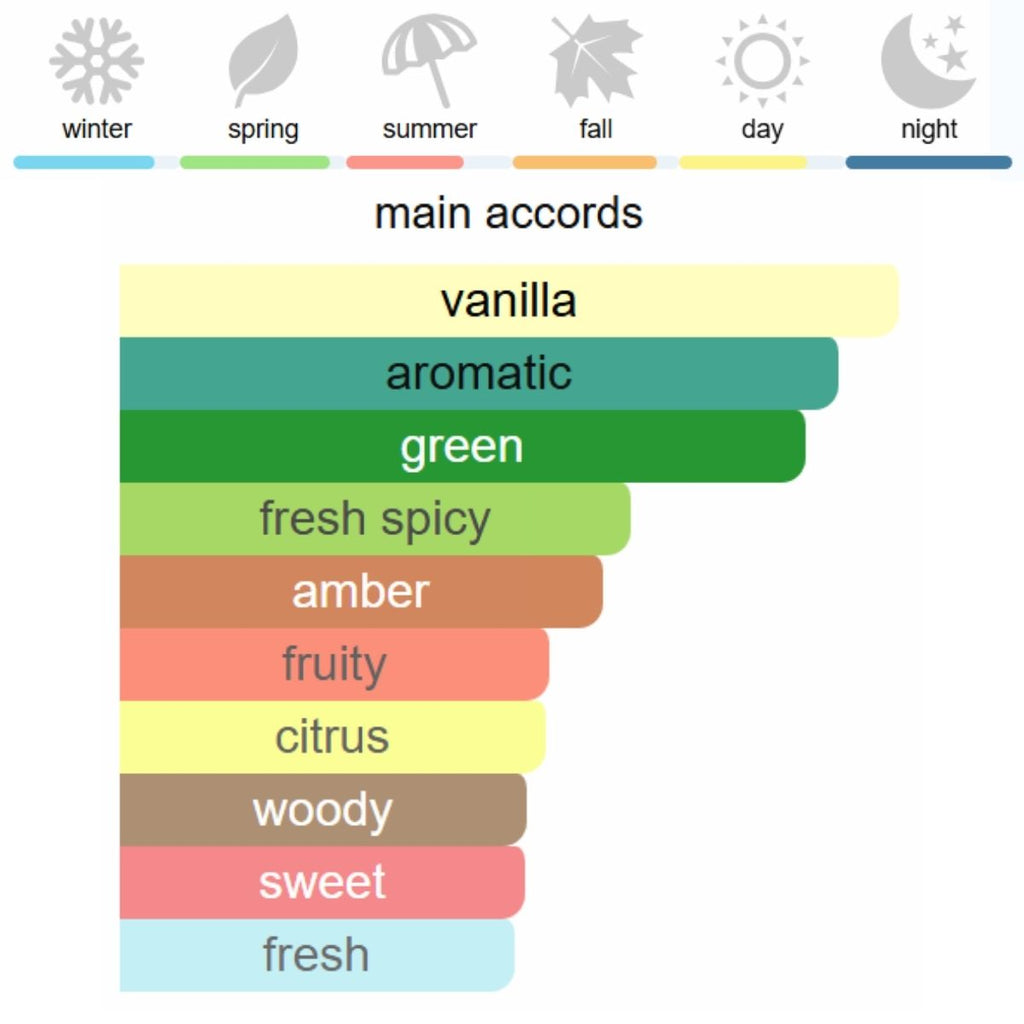 Базови нотки: мадагаскарска ванилия, вирджински кедър, атласки кедър, ветивер и дъбов мъх