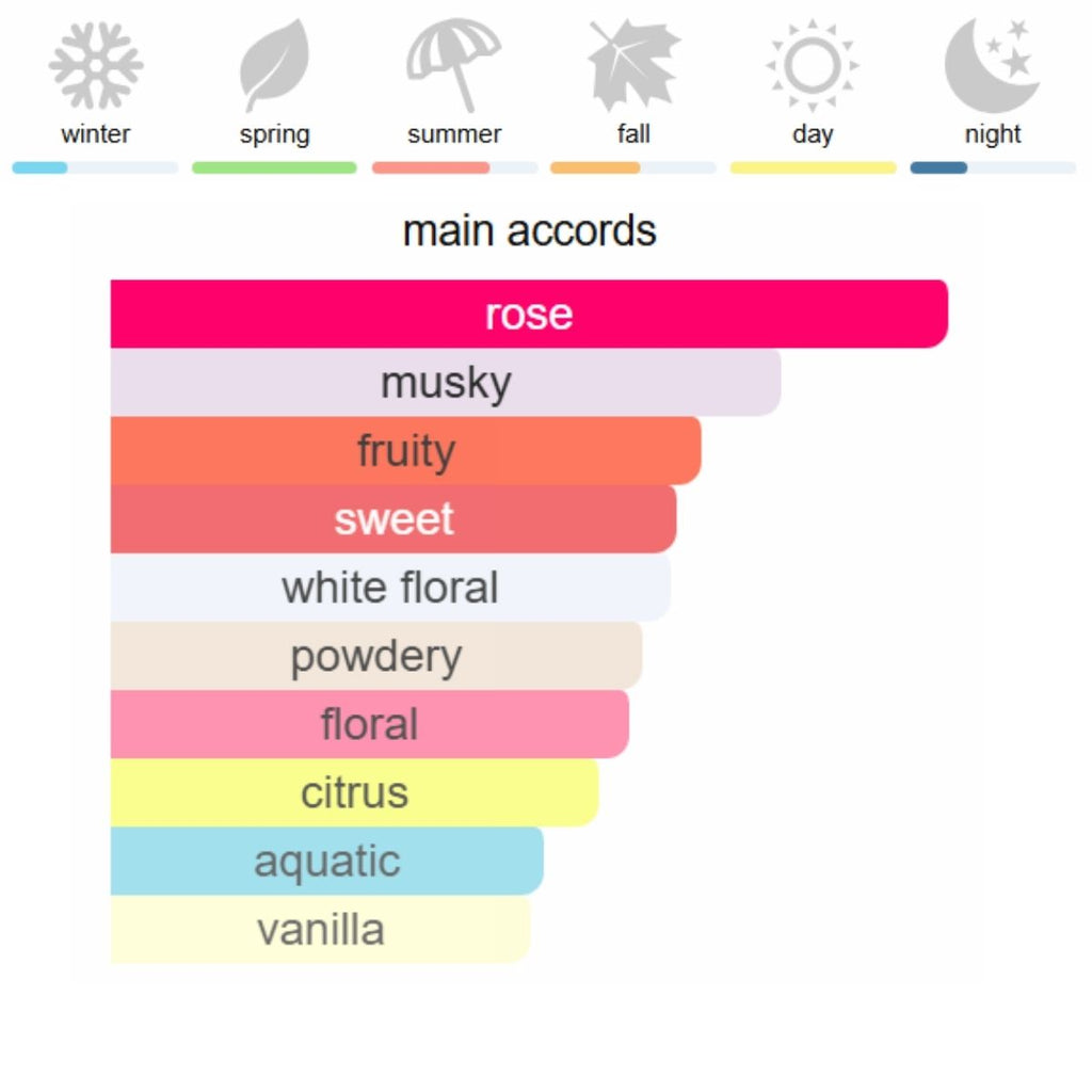 Базови нотки: бял мускус, ванилия, пачули и кедър