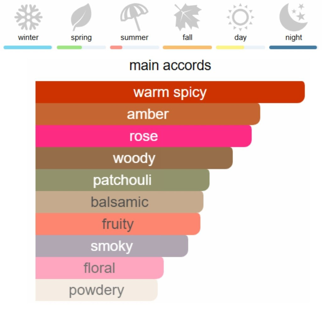 Сърдечни нотки: Турска роза, Пачули, Тамян, Сандалово дърво, Иланг-иланг
