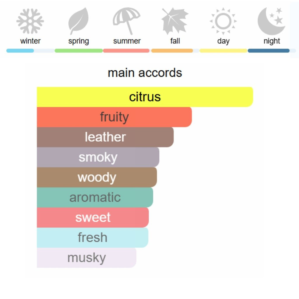 Връхни нотки: лимон, ананас, бергамот, касис и ябълка