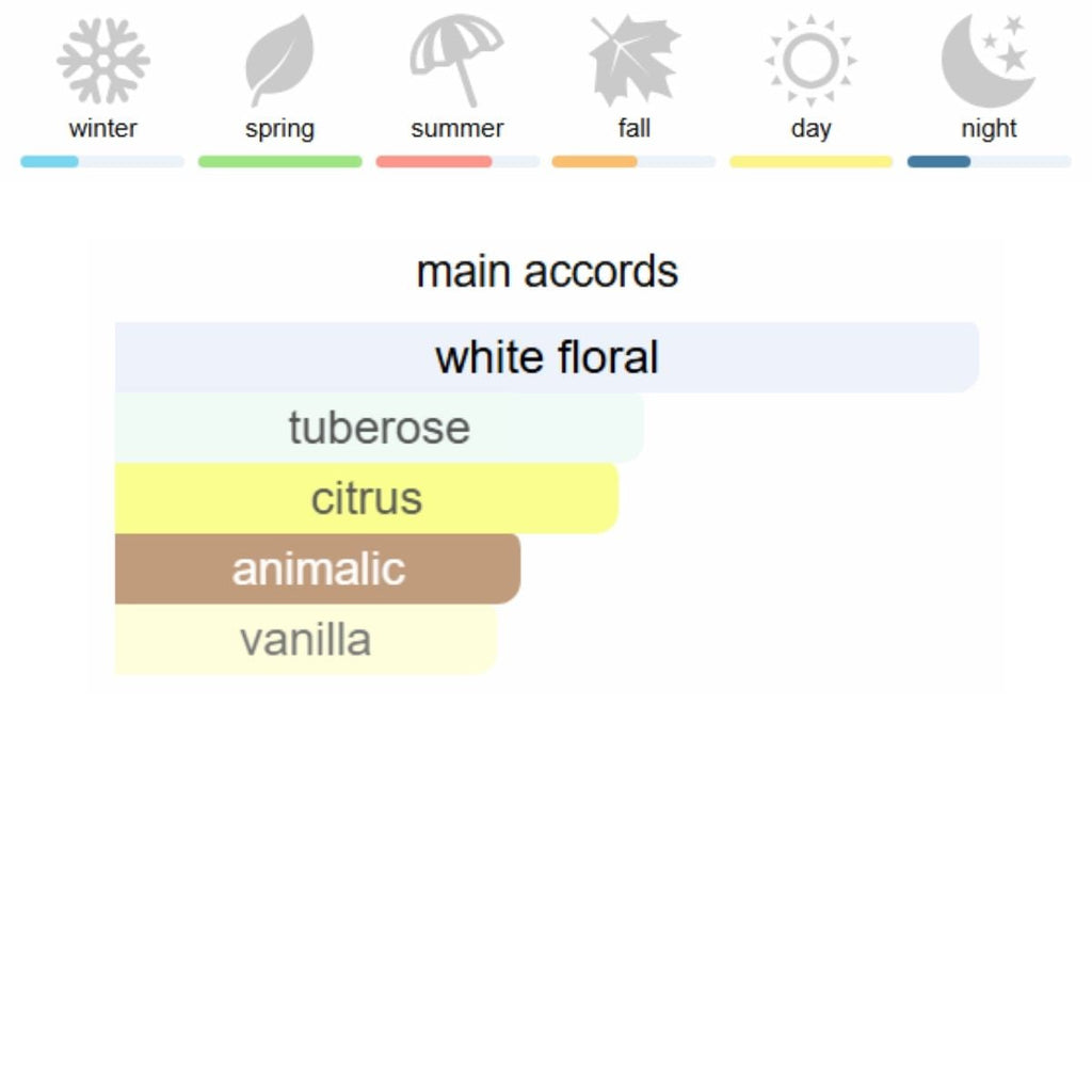 Базови нотки: мадгаcкарска ванилия, бял мускус и вирджински кедър