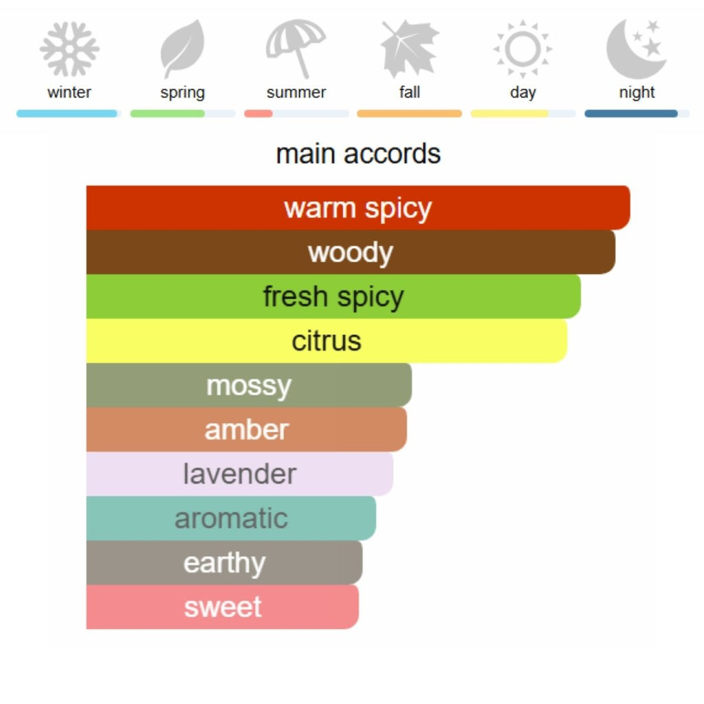 Базови нотки: дървесни акорди, мъх, бяло сандалово дърво, тонка боб и амбра